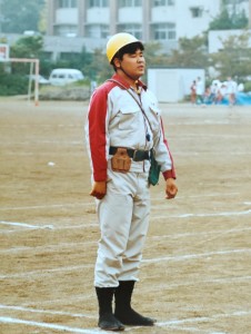 当時私の通っていた高校では、体育祭はクラス対抗で行われていました。柴田は8組連合の応援団長です。