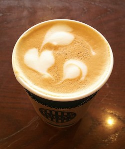 ちなみに、ホットのラテを頼むと、たま~にお店の人がサービスして